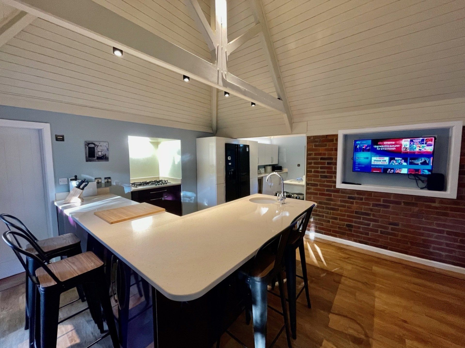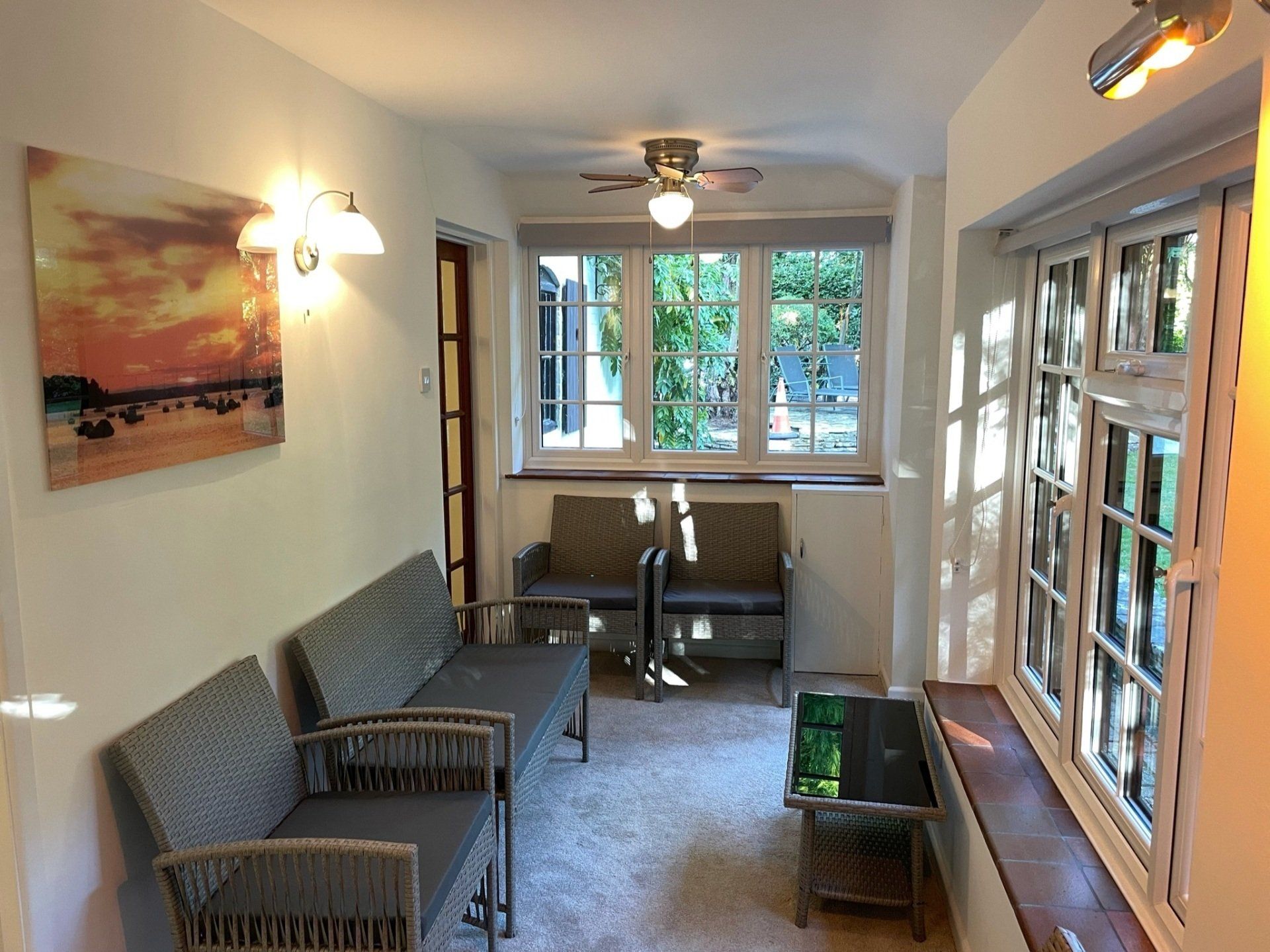 - Fully equipped kitchen in bright new extension with dining area, underfloor heating and patio doors out to a patio area in the garden. With Sky TV