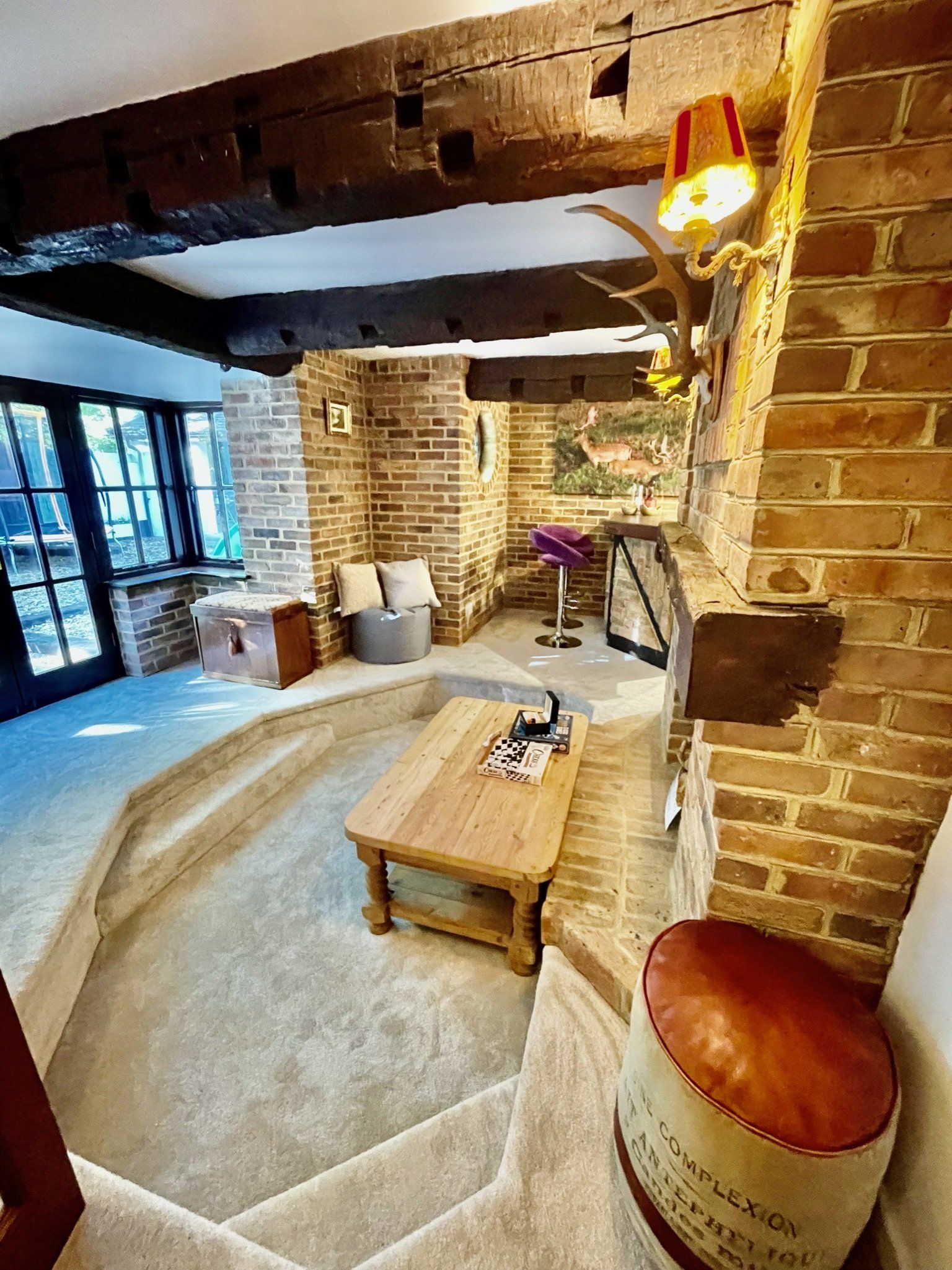 - Full of character the lounge has old beams and an inglenook fireplace with wood stove leads to a snug, bar and play area. With Sky TV